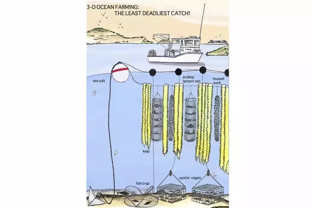 布倫·史密斯(BrenSmith)想要創(chuàng )造數千個(gè)體面的工作,改變我們從海洋中獲取食物的方式,降低氣候變化和海洋退化的影響,這促使他提出了“小規模的3D海洋農場(chǎng)”的設想。他在寫(xiě)給《國家地理》雜志的文章中表示:這一“3D海洋農場(chǎng)”的基礎設施非常簡(jiǎn)單——海藻、扇貝和貽貝長(cháng)在浮動(dòng)的繩子上,上面堆放牡蠣和蛤籠。從這些作物將用于海洋農民來(lái)生產(chǎn)糧食、肥料、動(dòng)物飼料、醫藥、化妝品、生物燃料和其他副產(chǎn)品。